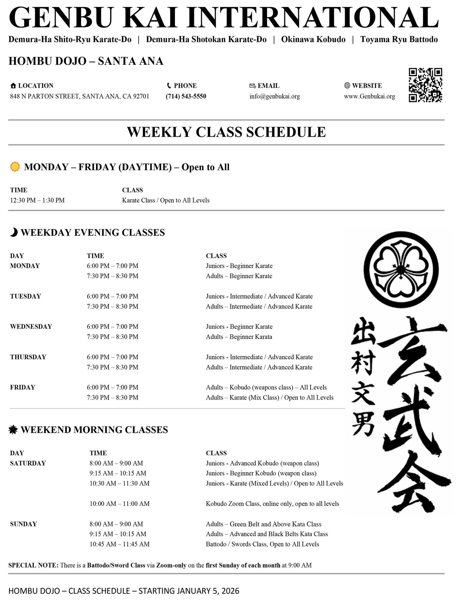 Our main (hombu) dojo is located in Santa Ana, California. Please refer to the Dojo Listings tab for other locations.