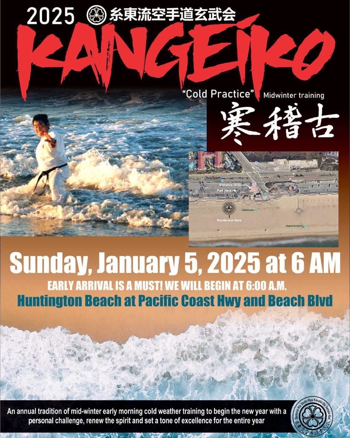 Event: Kangeiko - Beach Workout Date: Sunday January 4th, 2026 Location: Huntington Beach Address: Pacific Coast Hwy and Beach Blvd Entrance Time: 6:00 AM Download Flyer