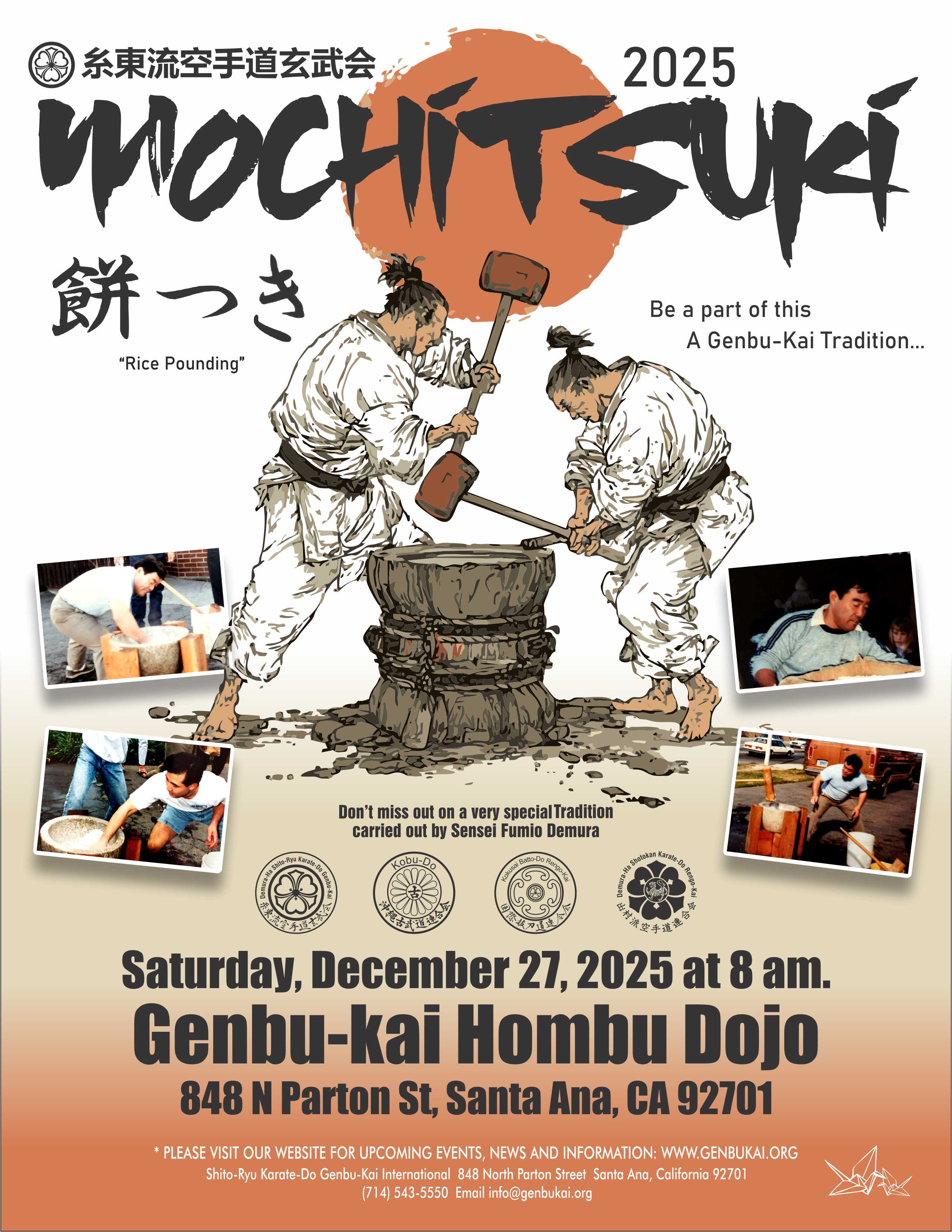 Event: Mochitsuki - Rice Pounding Date: Saturday December 27th, 2025 Location: Hombu Dojo Address: 848 N Parton St, Santa Ana, CA 92701 Time: 8:00 AM to Noon Download Flyer